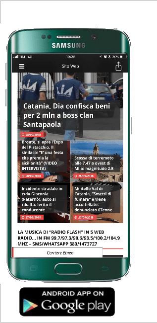 L’informazione a portata di un click? Scarica l’APP ufficiale del Corriere Etneo, è gratis e con tante notizie della tua città! In ogni momento e ovunque tu sia, il Corriere Etneo sarà insieme a te con le notizie della provincia etnea e le principali notizie Siciliane, le foto, le interviste e la musica di Radio Flash, media partner ufficiale del nostro giornale online.