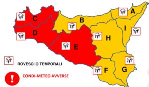 Allerta rossa oggi in tutta l’area nord-occidentale della Sicilia, sia per rischio idrico sia per rischio idrogeologico. L’allerta durerà fino a questa sera a causa delle diffuse, “a prevalente carattere di rovescio o temporale, sui settori occidentali e versanti meridionali centrali della Sicilia, con quantitativi cumulati da elevati a molto elevati; da sparse a diffuse, a prevalente carattere di rovescio o temporale, sul resto della Sicilia con quantitativi cumulati generalmente moderati, più rilevanti sui versanti ionici della Sicilia nord-orientale”.