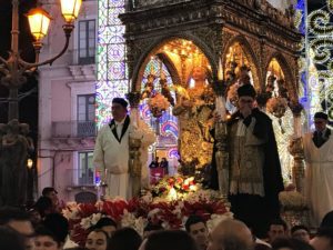 Una folla gremita in Piazza Indipendenza ieri sera a Paternò ha atteso con trepidazione la Santa patrona e l’arrivo danzante delle “varette”. E’ stata una standing ovation dei fedeli.