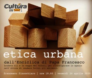 Venerdì 24 aprile alle ore 19.00, sarà ospite di Cultura in divano l’architetto Francesco Finocchiaro per discutere di Eticità e città e per questo dichiara: “Siamo chiamati a fare scelte per rigenerare la città. Ma quali valori devono guidare tali decisioni? Liberismo, centralismo, attenzione verso gli anziani? Serve una piattaforma etica per guidare la pianificazione strategica. Serve una mappa di valori, per riconfigurare lo spazio, nell’ottica di rendere felici gli abitanti. Cercheremo quindi di individuare modelli e traiettorie possibili, a partire dall’Enciclica di Papa Francesco, Laudato Sii. L’urbanistica non è solo uno strumento “tecnico” ma un modo di abitare il pianeta e tutti siamo chiamati a costruire convergenze politiche, economiche, sociali, culturali e tecnologiche. Il centro storico, le periferie, le aree produttive, la campagna e la natura; tutto connesso attraverso le reti fisiche e immaginifiche e dentro questa Pangea ideale, si colloca la storia, la memoria e l’identità collettiva che indirizza il nostro cammino.”