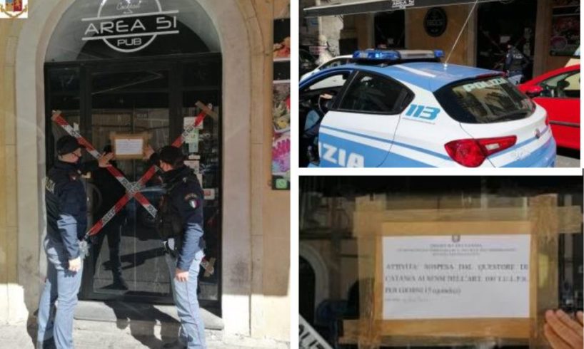 Il Questore di Catania ha emesso un nuovo provvedimento di sospensione dell’attività, per quindici (15) giorni, dell’esercizio pubblico di somministrazione di alimenti e bevande, sito a Catania, in via Coppola, n. 8/10, denominato “Area 51”.