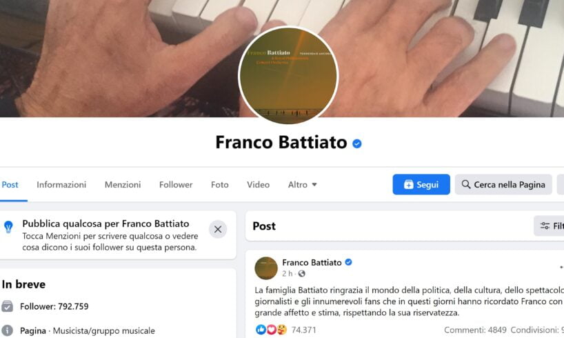 Lo si legge sulla pagina Facebook ufficiale del cantautore scomparso martedì nella sua villa di Milo, in provincia di Catania.