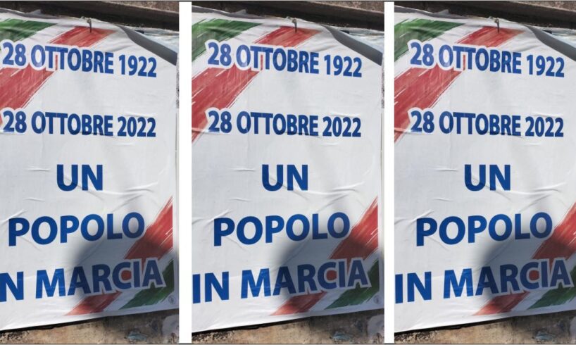 Il contenuto è chiaramente di matrice fascista e ci ricorda la marcia su Roma del ’22.