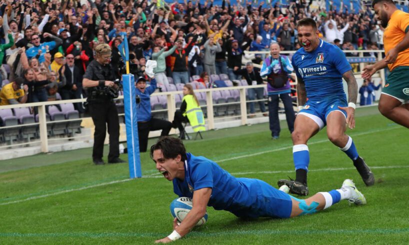 Lì, al Franchi, in quello stesso stadio dove nel 2016 gli azzurri superarono gli Springboks, la Nazionale si ripete e piega le velleità dell’Australia al termine di un match dove ogni tssello è andato al posto giusto ripagando delle tante vittorie mancate e delle profonde amarezze. Con solidità mentale, lucidità difensiva e cinismo in attacco come non le capitava di esprimere da almeno tre decenni, l’Italia doppia il largo successo con le Samoa della scorsa settimana vincendo per la prima volta nella storia contro i Wallabies dopo 20 tentativi andati a vuoto. Lo fa a concluione di una battaglia giocata sui nervi, con gli ospiti a subire nettamente per larghe fasi del gioco ma capaci di approfittare dei quattro calci sbagliati dagli Azzurri per restare agganciati al match fino all’ultimo minuto, quando la trasformazione dopo la meta di Neville a tempo scaduto avrebbe infranto, con una buona dose di ingiustizia, il sogno degli oltre 20.000 di Firenze e di tutto un movimento che ha provato a ricompattarsi dopo il ko con la Georgia di questa estate che sembrava essere preludio ad una crisi senza ritorno.