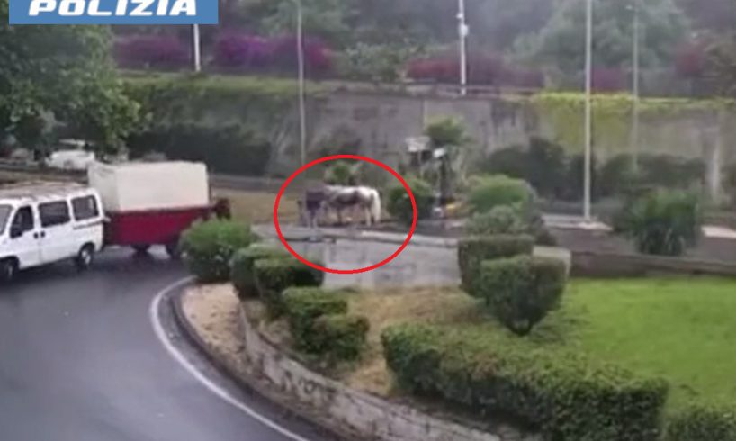 L’episodio risale al 25 maggio, quando gli organi di stampa hanno riportato la notizia dell’incidente di un cavallo al Tondo Gioeni, lungo la circonvallazione di Catania. Visionando le immagini del sistema di videosorveglianza collegato alla Sala Operativa della Questura, gli agenti della Squadra a Cavallo hanno ricostruito l’accaduto.