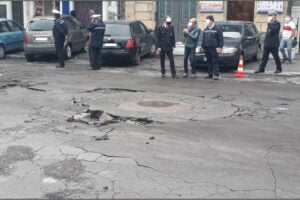 Paternò, danni ingenti provocati dal maltempo: in Piazza Vittorio Veneto cede parte della strada