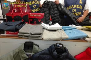 Catania, GdF sequestra a Giarre e Zafferana capi di abbigliamento contraffatti: borse e giubbotti con marchi falsi